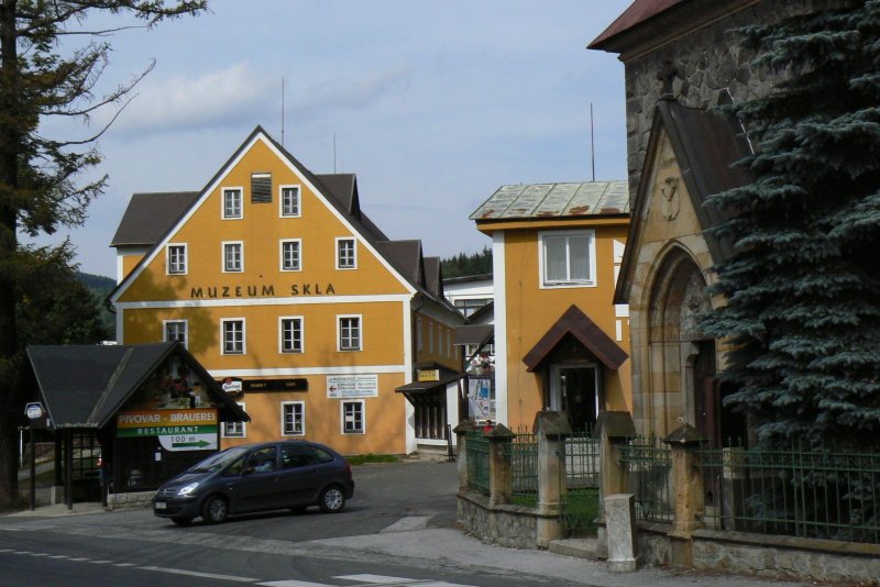 Sklárna Novosad a syn v Harrachově nabízí prohlídku zde tradičního způsob výroby skla. Unikátní 100 let stará historická brusírna skla, která je poháněná transmisemi a vodní turbínou. V roce 2002 byl přímo v areálu sklárny přistaven minipivovar s restaurací. (20min autem)